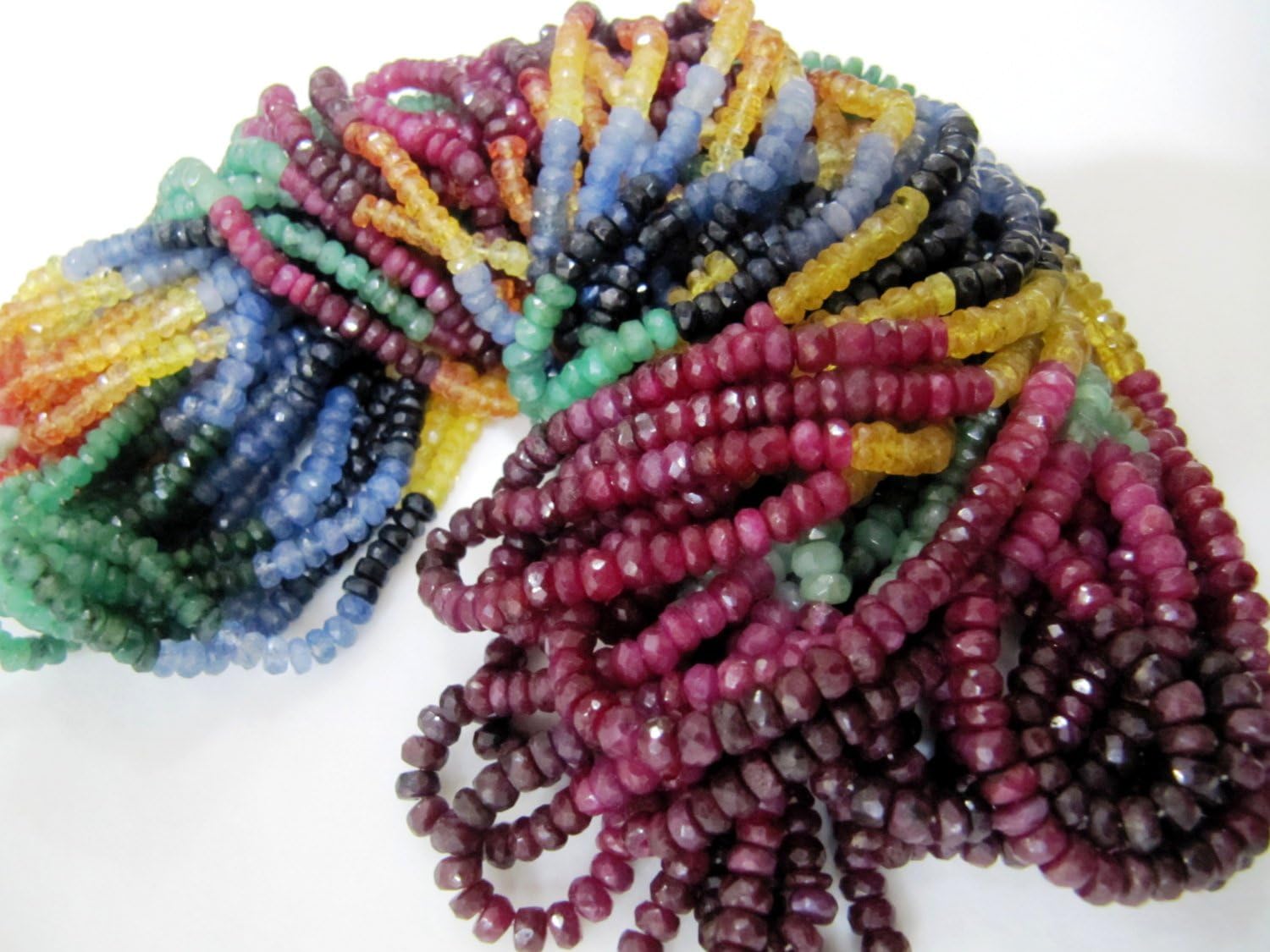 Multi Precious Ruby Emerald Sapphire Beads 3-4 mm, 100% Genuine Ruby Emerald Sapphire Rondelle Faceted 8 inch Strand, African Beads