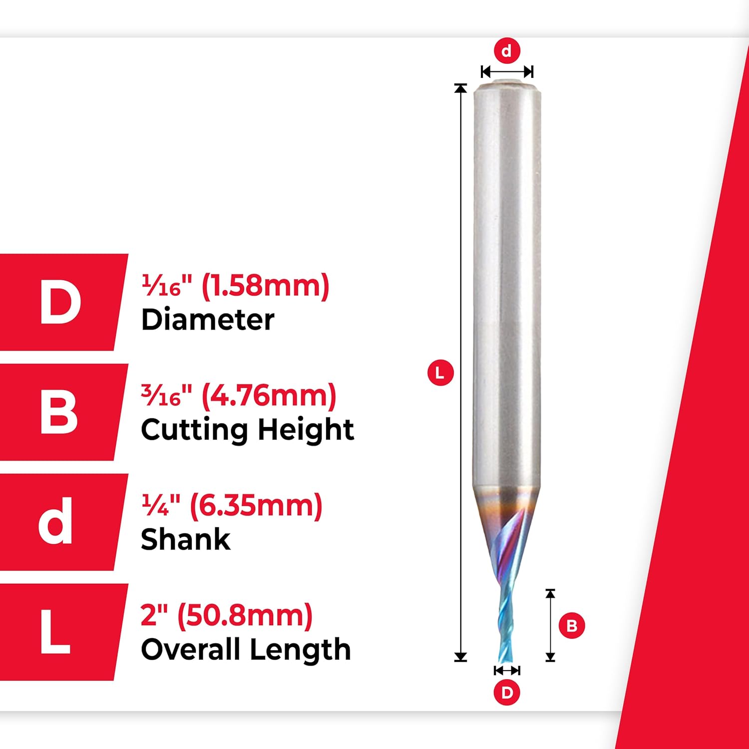 | Size Name | 1/16 Dia x 1/4 CH x 1/8 SHK 2 Inch |