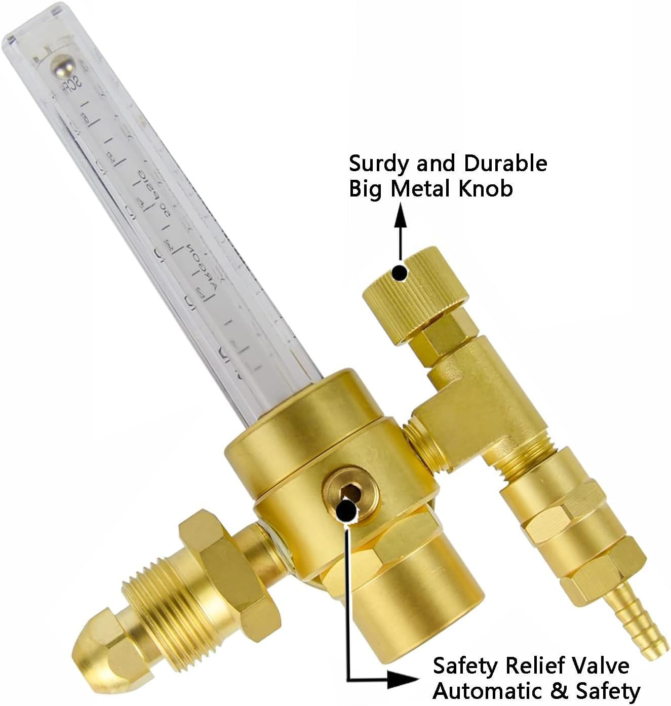 Argon/CO2 Flow Meter Gas Regulator Compatible with Mig Tig Welder Regulator with 6.6FT Gas Hose 10 to 60 CFH Output Flow 0 to 4000 PSI - CGA-580 Inlet argon flow gauge welding regulator Application: The Argon Flow Meter fits Argon, CO2 and Argon/CO2 fixed. This Gas Hose Is Ideal For Fitting Mig And Tig Welding. Idea choice for welding, cutting ,chemical and electronics industry! Reliable Design: Robust pressure gauge and easy to read flow tube, completely avoid of injury under adverse conditions. The ergonomic flow meter can be adjusted for different uses. Combination of regulator and flow meter as one unit. Easy to Read, Accurate: The Flowmeter is an economic alternative. Has a unique filter port design on the CGA-580 mounting port. No Leaks,Super Easy to Adjust: All the hardware of this flowmeter regulator was tight and passed the leak test.You can easily turn the adjustment knobs by hand. Very easy to use every time, Perfect for Mig and Tig welding!!! Specification: Gases Used: argon, helium, nitrogen, and argon/CO2 mixed Flow Range: 10-60 SCFH Pressure Range: 0-4000psi Inlet Connection: CGA 580 Hose Length: 2M/6.6 FT Material: Brass/Plastic Package Includes: 1 X Argon Regulator 1 X 6.6Ft Hose Note: Fit for all standard argon, helium, CO2 gas tanks. Hydrogen and oxygen are flammable gases, please find their specific gas pressure regulator.