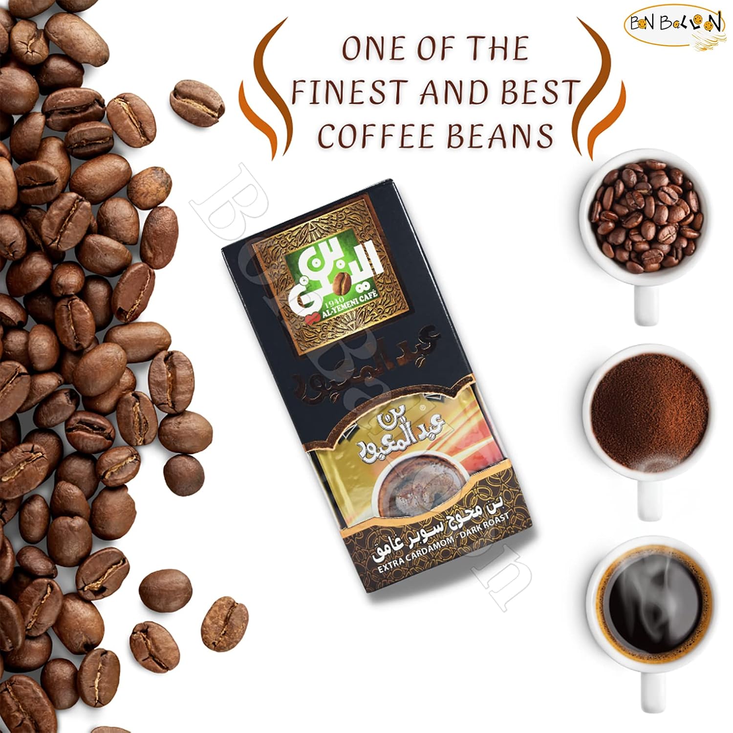 EL - Yemeni EL Yemeni ELYemeni With Cardamom & Extra Coffee Dark Roast Ground Beans Cafe Caffee Cofee Egyptian Egypt Arab Arabic Arabian Cup ( Extra Cardamom Dark Roast ) (1 Box = 7 oz / 200 gm) Since 1940 El-Yemeni Cafรฉ Has Been Roasted The Finest Coffee Unequaled Both In Taste And Freshness . How To Create The Best Coffee : A- Boil Water Equal To The Number Of Servings Required . B- Add One Heaped Tea Spoon Of Coffee For Every Cup . Add Required Sugar Amount And Stir . C- Bring To A Boil On A Low Flame . Take Off When The Coffee Starts Rising And Serve D- Taste And Enjoy A Vacuum Packaging Weight (Approx.) : 7 oz / 200 gm ๐ - Ingredients : Coffee , Cardamom .