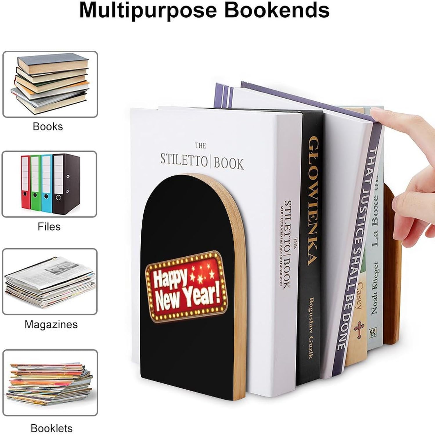 Custom Bookend Wood Book Ends for Shelves Cute Book Shelf Holder Home Decorative,the book end protect your bookshelf or furniture from scratching when you move the bookends
