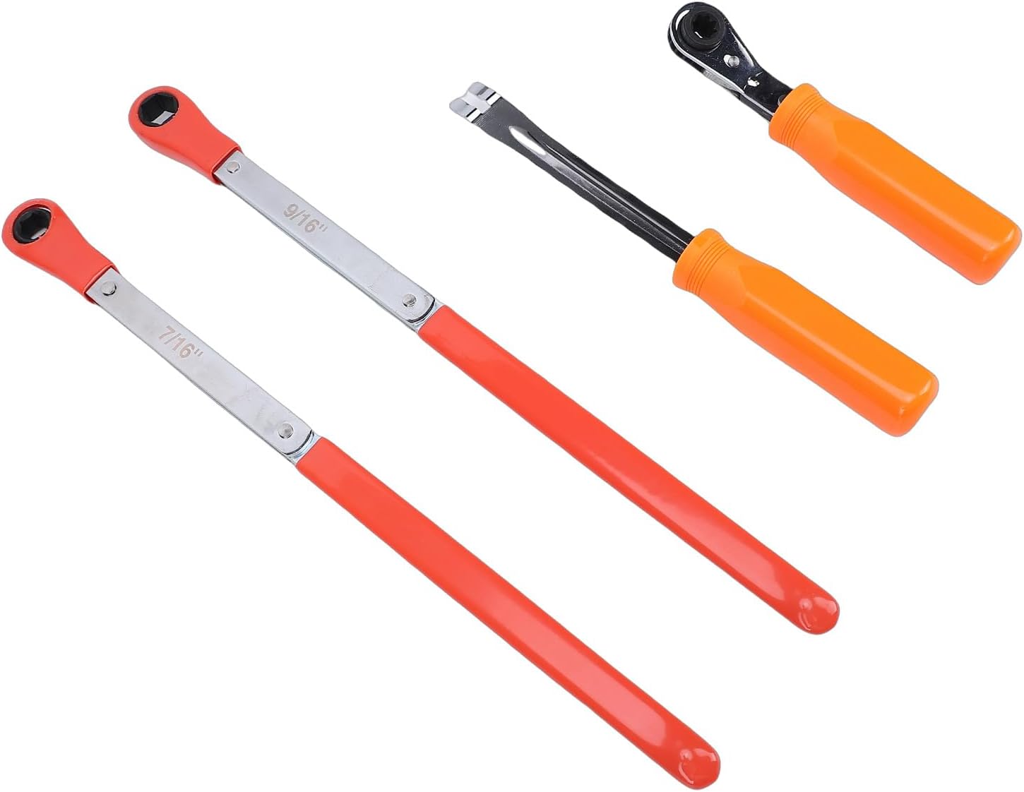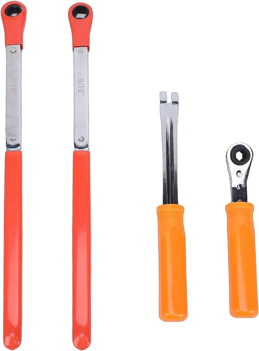 [Ergonomic Design for Easy Use] Featuring extended handles for superior leverage and an optimized grip design that minimizes user fatigue during prolonged use. the smart engineering overcomes common reverse mechanisms in slack adjusters while requiring less physical effort during operation. perfect for busy workshops where tools need to perform all day. [ Engineered Components] The brake adjustment tool boasts a precisely crafted fork tip that securely fits under brake system pawls without slipping. enables safe tensioner button release without prying or damaging sensitive components. this professional tool prevents costly repairs by maintaining proper brake system integrity during adjustments. [Complete Brake Maintenance Solution] This comprehensive slack adjuster kit delivers professional grade accuracy for precise air brake adjustments every time. the trusted design meets rigorous commercial vehicle maintenance requirements with consistent reliable results. ideal for teams and professional mechanics working on heavy duty vehicles. [Professional Grade Tool Set] This 4 piece automatic slack adjuster tool set is engineered to simplify installation and maintenance of air brake systems in heavy duty trucks and trailers. the comprehensive kit includes 7/16inch and 9/16inch wrenches along with a specialized fork end release tool for complete brake servicing efficiency. designed for commercial vehicle technicians seeking reliable results. [Durable Alloy Steel Construction] Crafted from high grade alloy steel with protective powder coating for maximum resistance against wear erosion and environmental damage. the robust finish ensures long lasting performance even in demanding workshop conditions. built to withstand the rigors of daily professional use without compromising performance. Spec: Item Type: Automatic Slack Adjustment Tool Set Material: Alloy Steel Package List: 4 x Wrenches 1 x Storage