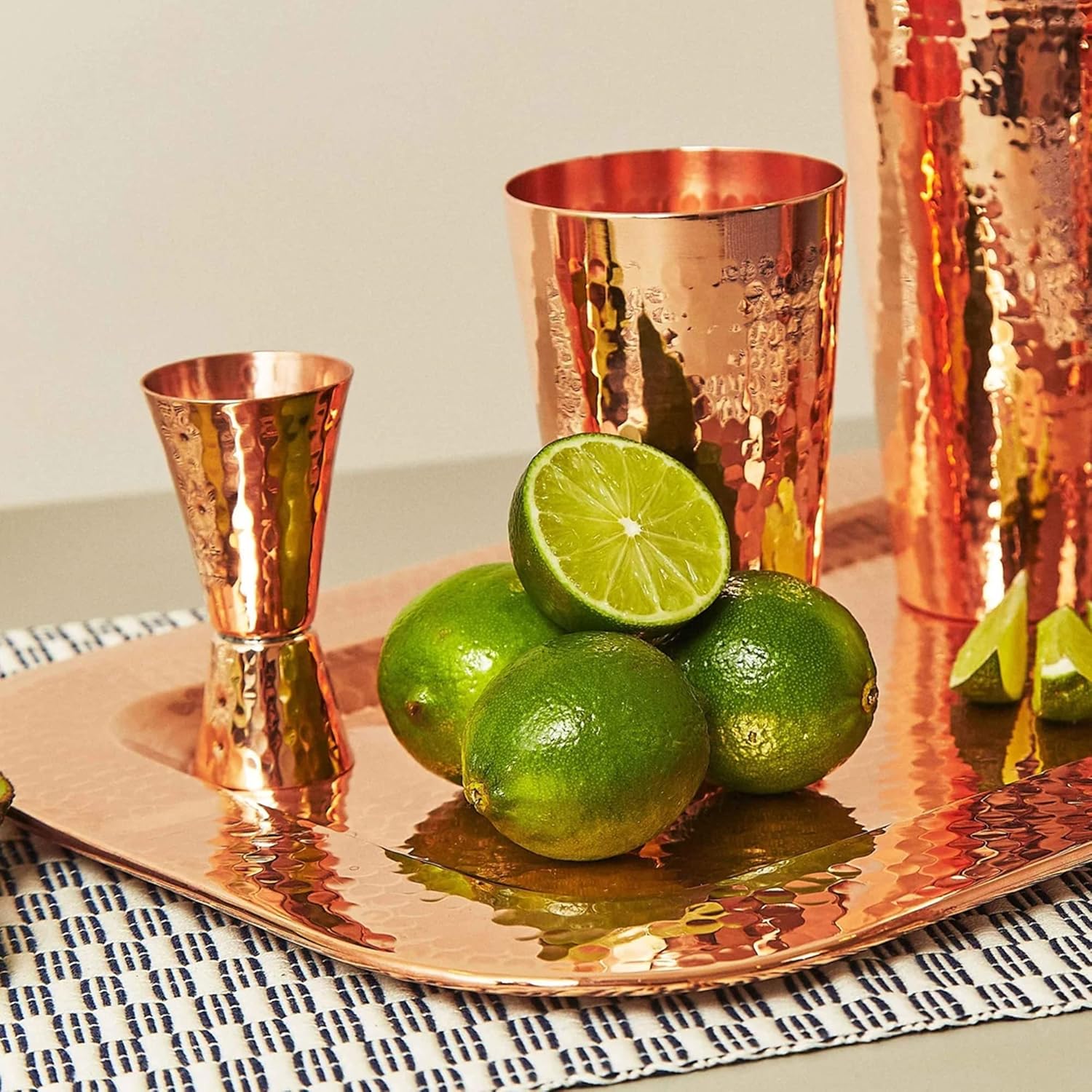 Your new Jigger can be Hand-wash and is Dishwasher Safe. Dry your copper jigger with a cotton towel immediately after washing. DO NOT use steel wool, steel scouring pads or harsh detergents on all copper cocktail goods. Copper will develop a rich patina over time. To keep the exterior looking new, use a copper polish or a combination of lemon and salt. Hello my name is Jonathan Beall and I am the founder of Sertodo Copper. Since 1997, we have been bringing you the highest quality copper goods made by the master artisans in our shops located in Austin, Texas and Santa Clara del Cobre, Michoacan. Our products are made to be used. They are designed to become heirlooms for generations to use and appreciate: warm patinas, polished shine, entertaining, socializing, cooking, and enjoying home, family and health. The first pieces sold from the back of my truck in 1997 are still in use today. We know… because those same people are still customers today!. JGR Features: - Double-sided, 1 and 2 oz fluted jigger. 1/4, 1/2 and 3/4, 1 1/2 markings respectively. -Sleek, fluted curve for smooth pouring. Finish: -Hammered copper. Product Type: -Jigger. Primary Material: -Metal. Dimensions: Overall Height - Top to Bottom: -4.2". Overall Width - Side to Side: -2". Overall Depth - Front to Back: -2". Overall Product Weight: -0.18 lbs.