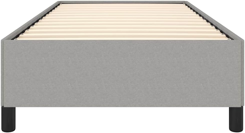 This Twin XL light gray fabric bed frame beautifully combines style and functionality, perfect for modern bedrooms. Its understated elegance and smooth texture create a soft look, ideal for both adults and teens looking to upgrade their sleeping space.Modern Design: The bed frame features a sleek light gray upholstery that fits perfectly in a contemporary setting while providing a cozy atmosphere.Breathable Material: Designed with breathable polyester fabric, this frame ensures proper airflow, keeping you comfortable throughout the night.Sturdy Construction: Made with engineered wood and plywood, this bed frame offers exceptional strength and stability, supporting up to one person with ease.Easy Assembly: This bed frame is designed for quick and hassle-free assembly, allowing you to set it up and enjoy your new sleeping environment in no time.Versatile Use: It's perfect for sleeping, relaxation, and can easily fit into guest rooms or smaller apartments while maintaining style.Color: Light GrayShape: RectangularMaterial: Fabric PolyesterFinish: MatteIndoor/Outdoor: Indoor OnlyCover Included: NoRoom: BedroomCapacity: Single BaseMaximum Number of People: 1Dimensions: 16.0 x 31.9 x 5.4 in (W x L x H)Leg Height: 13.8 inWeight: 52.69 lbsSwings: NoDelivery Contains: Bed frame without mattressAssembly Required: YesRecommended Number of People for Assembly: 2